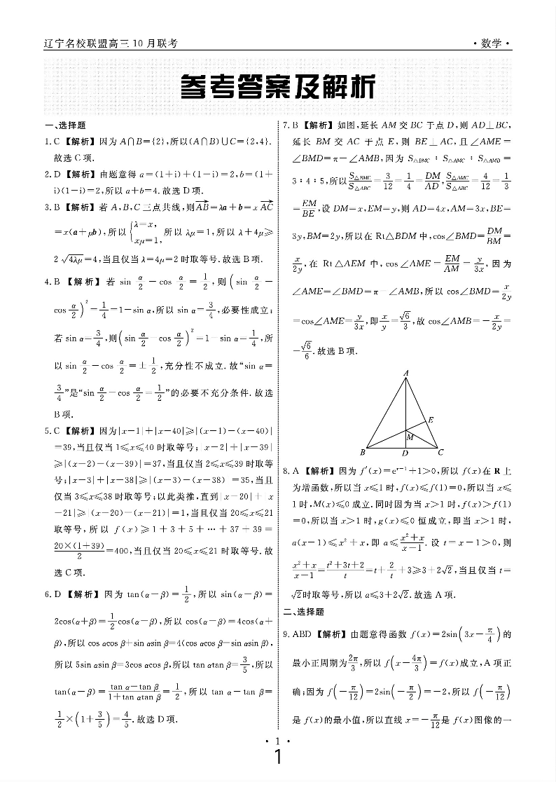 辽宁省名校联盟2024年高三10月份联合考试+数学答案