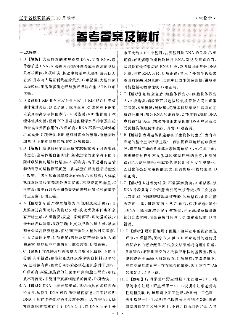 辽宁省名校联盟2024年高三10月份联合考试+生物答案