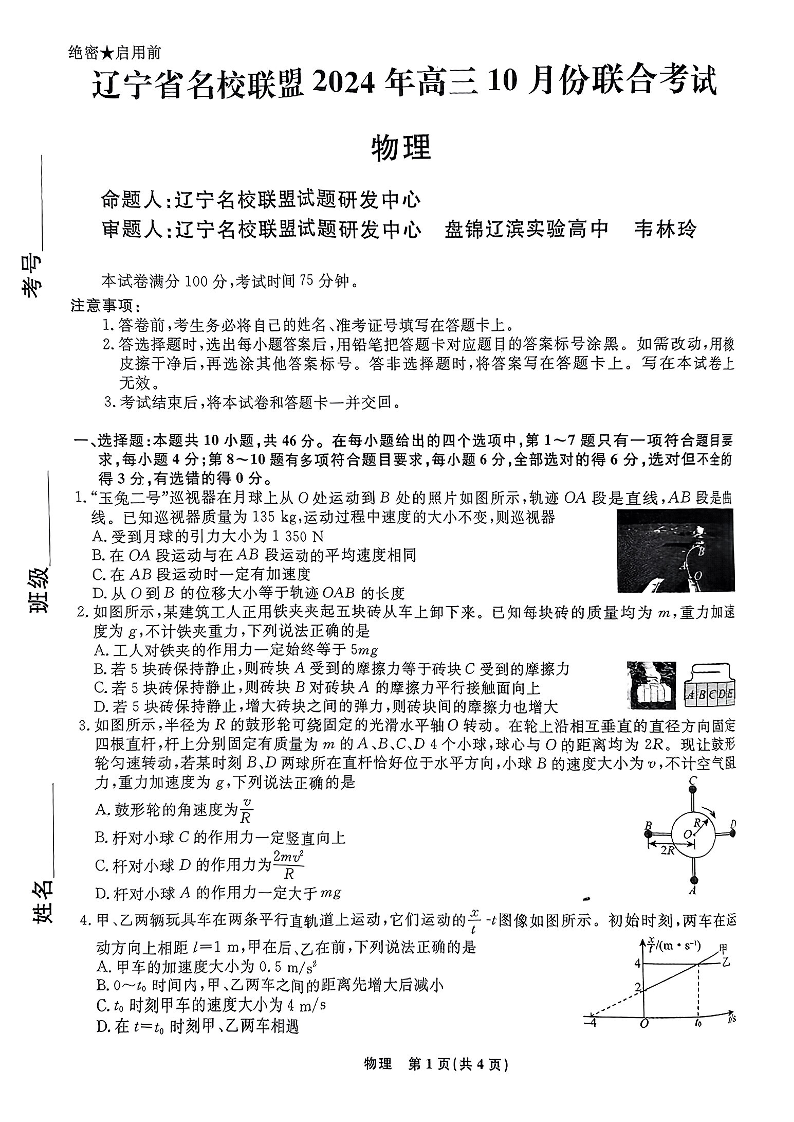 辽宁省名校联盟2024年高三10月份联合考试+物理