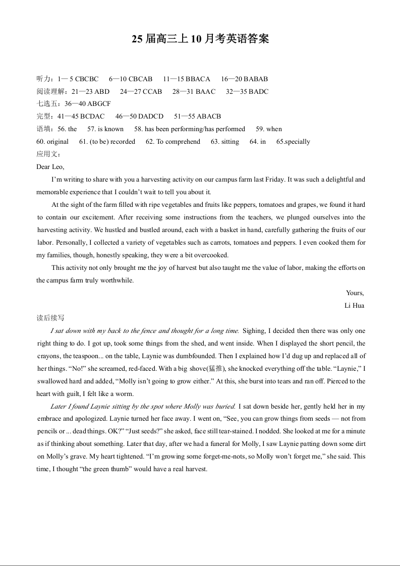 辽宁省实验中学2025届高三上学期第一次月考+英语答案