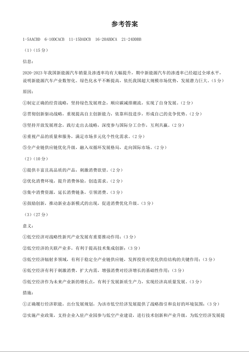 辽宁省实验中学2025届高三上学期第一次月考+政治答案