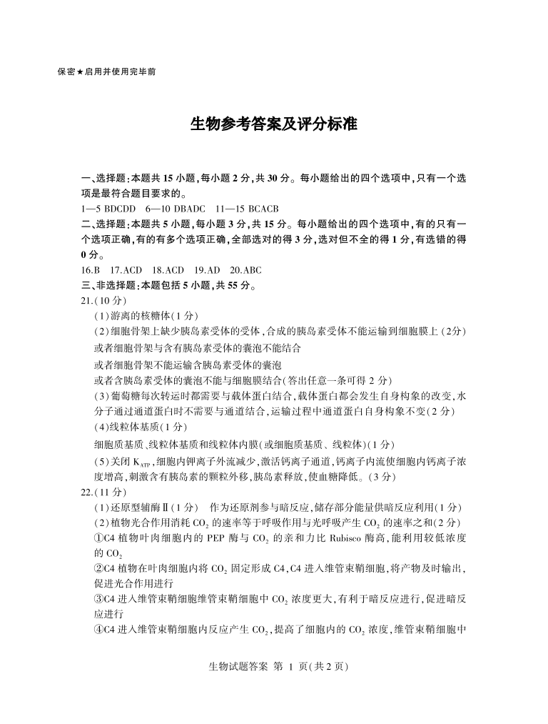 临沂市2024.11高三年级期中教学质量检测考+生物答案