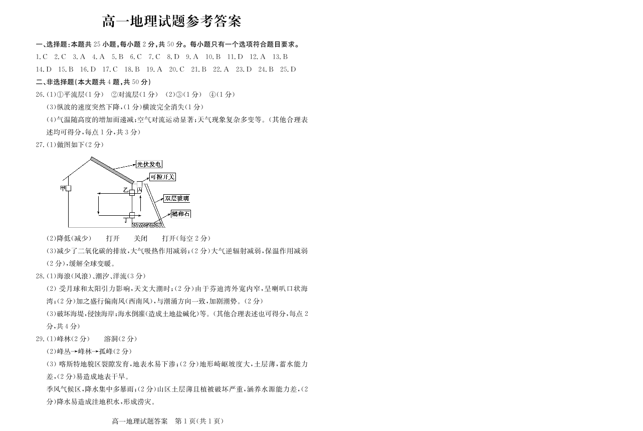 山东省德州市2024.11高一年级期中统一检测试题地理答案