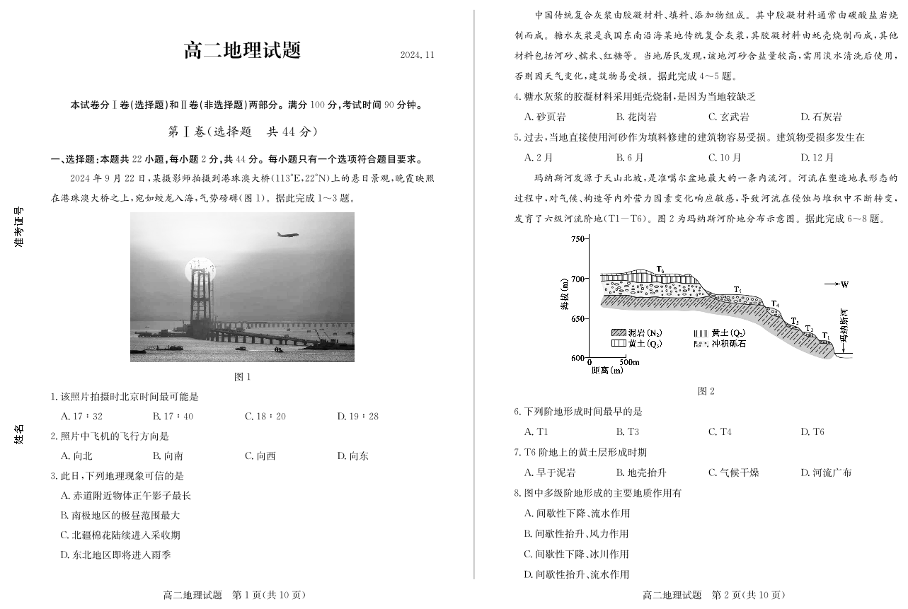 山东省德州市2024.11高二年级期中统一检测试题地理