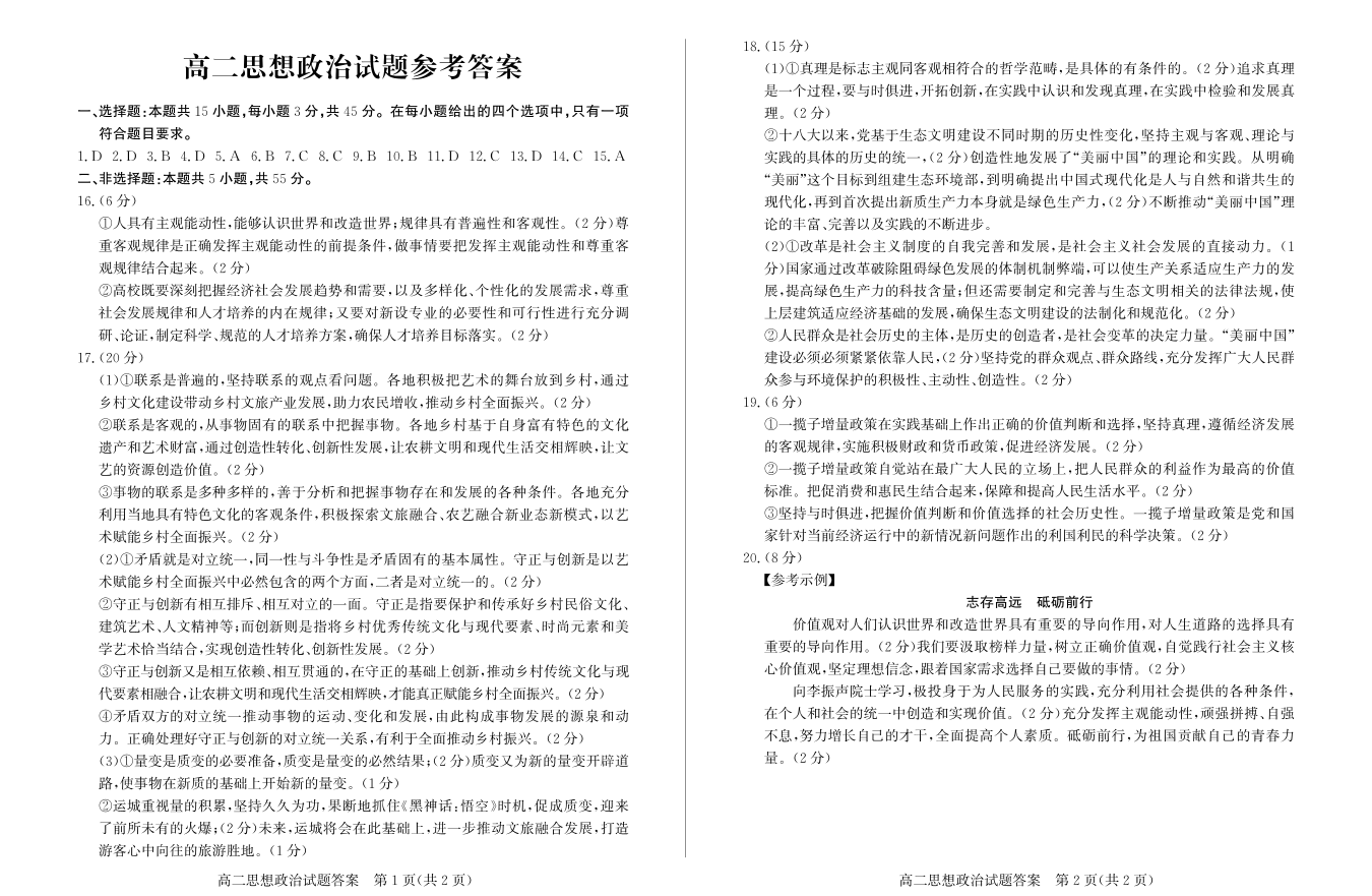 山东省德州市2024.11高二年级期中统一检测试题政治答案