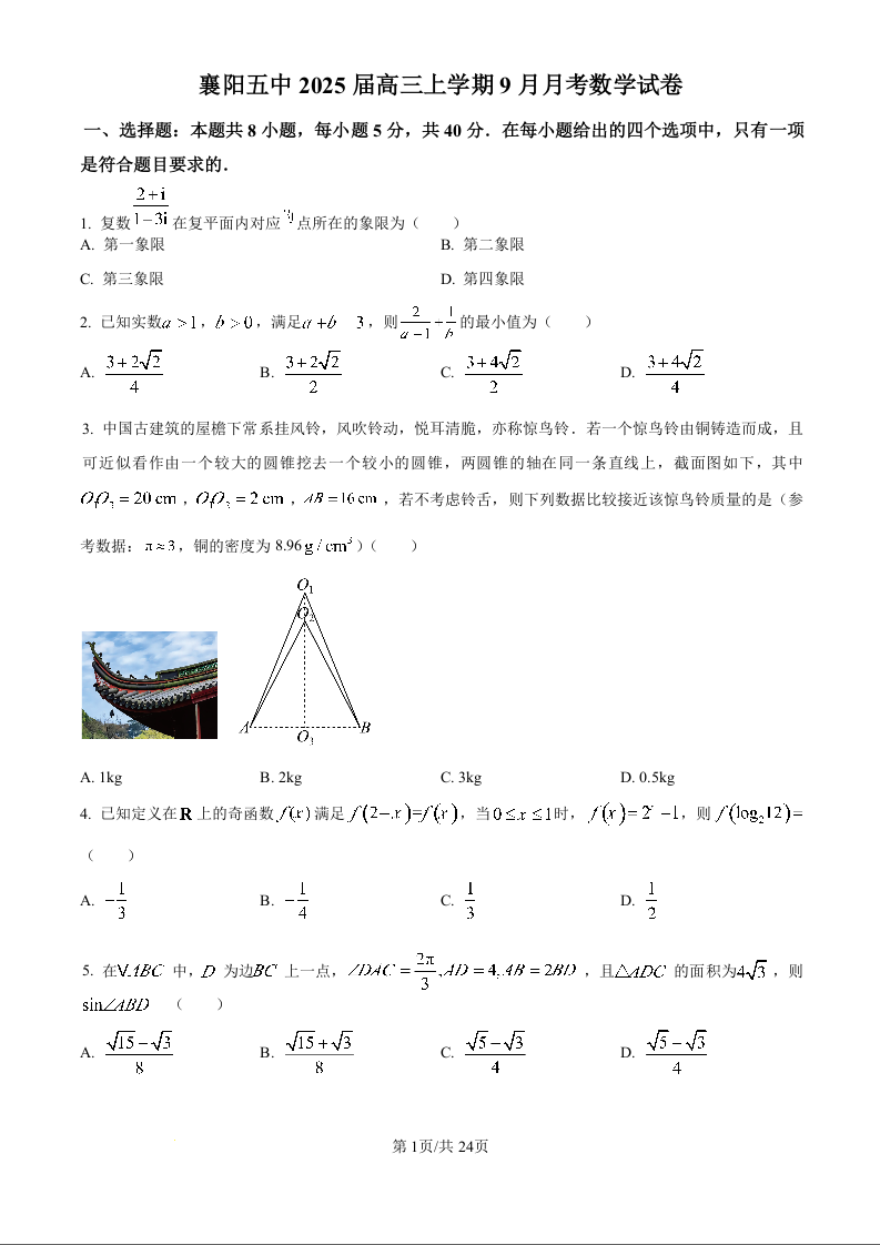 湖北省襄阳市第五中学2024-2025学年高三上学期9月月考+数学