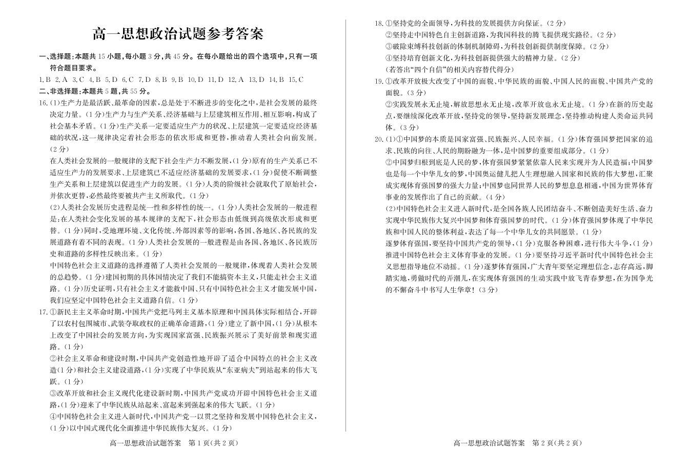 山东省德州市2024.11高一年级期中统一检测试题政治答案