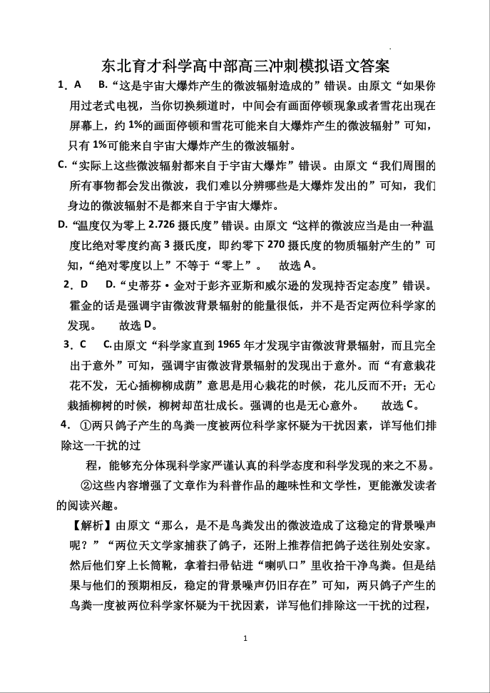 2023届辽宁省东北育才学校科学高中部高三最后一次模拟考试 语文答案