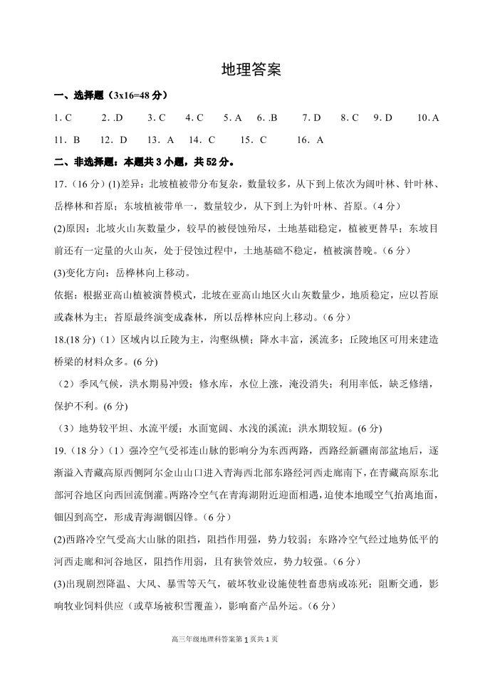 2023届辽宁省东北育才学校科学高中部高三最后一次模拟考试 地理答案