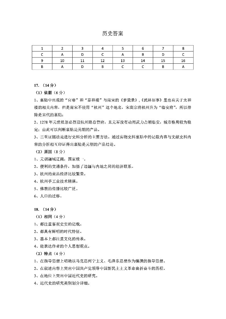 2024届辽宁省东北育才学校科学高中部高三下学期适应性测试+历史答案