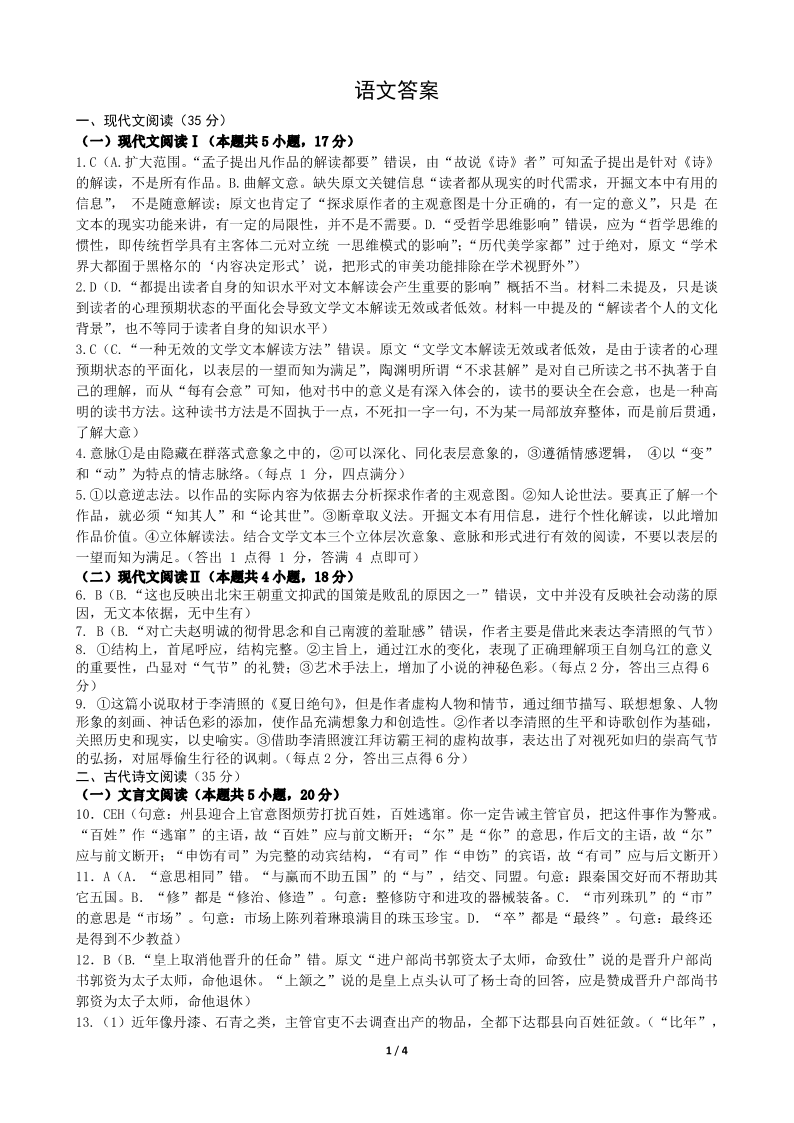 山西大学附属中学2023届高三下学期5月月考 语文答案