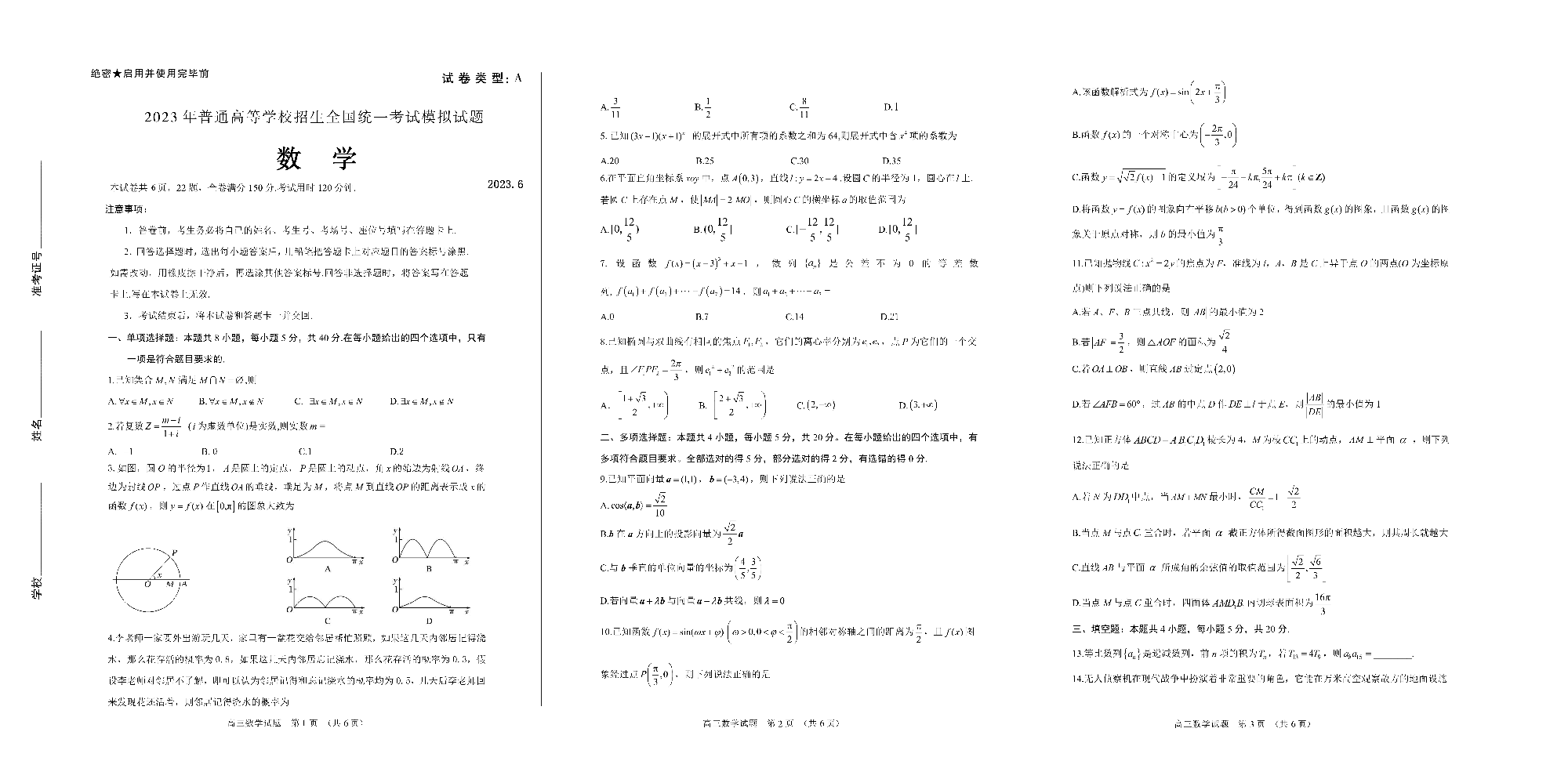 2山东师大附中2023.6高三年级考前模拟检测数学
