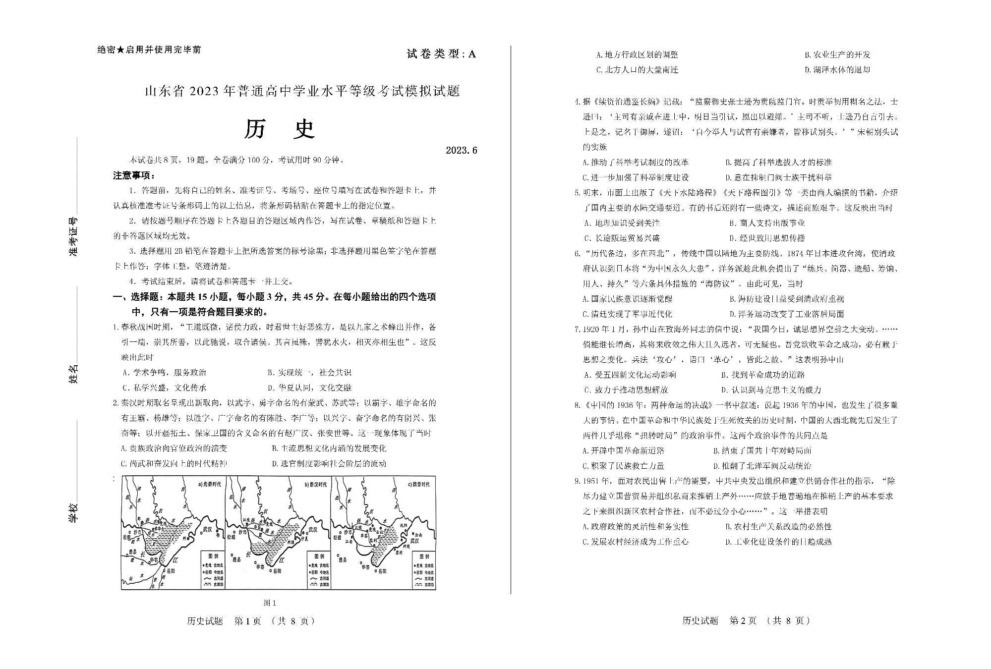 山东师大附中2023.6高三年级考前模拟检测历史