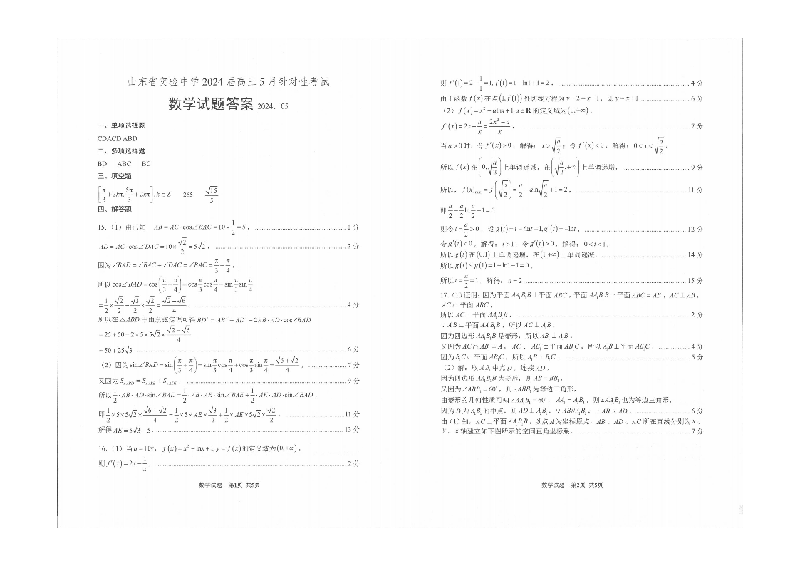 2山东省实验中学2024.5高三年级针对性考试数学答案