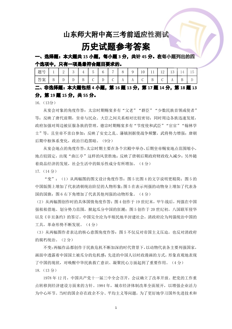 山东省师大附中2024.6高三年级考前模拟历史答案