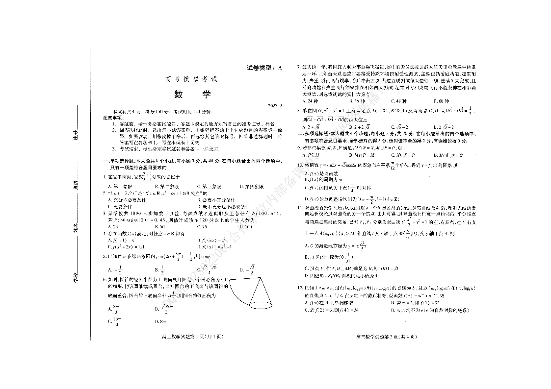 山东省潍坊市2023.2高三年级第一次模拟考试数学