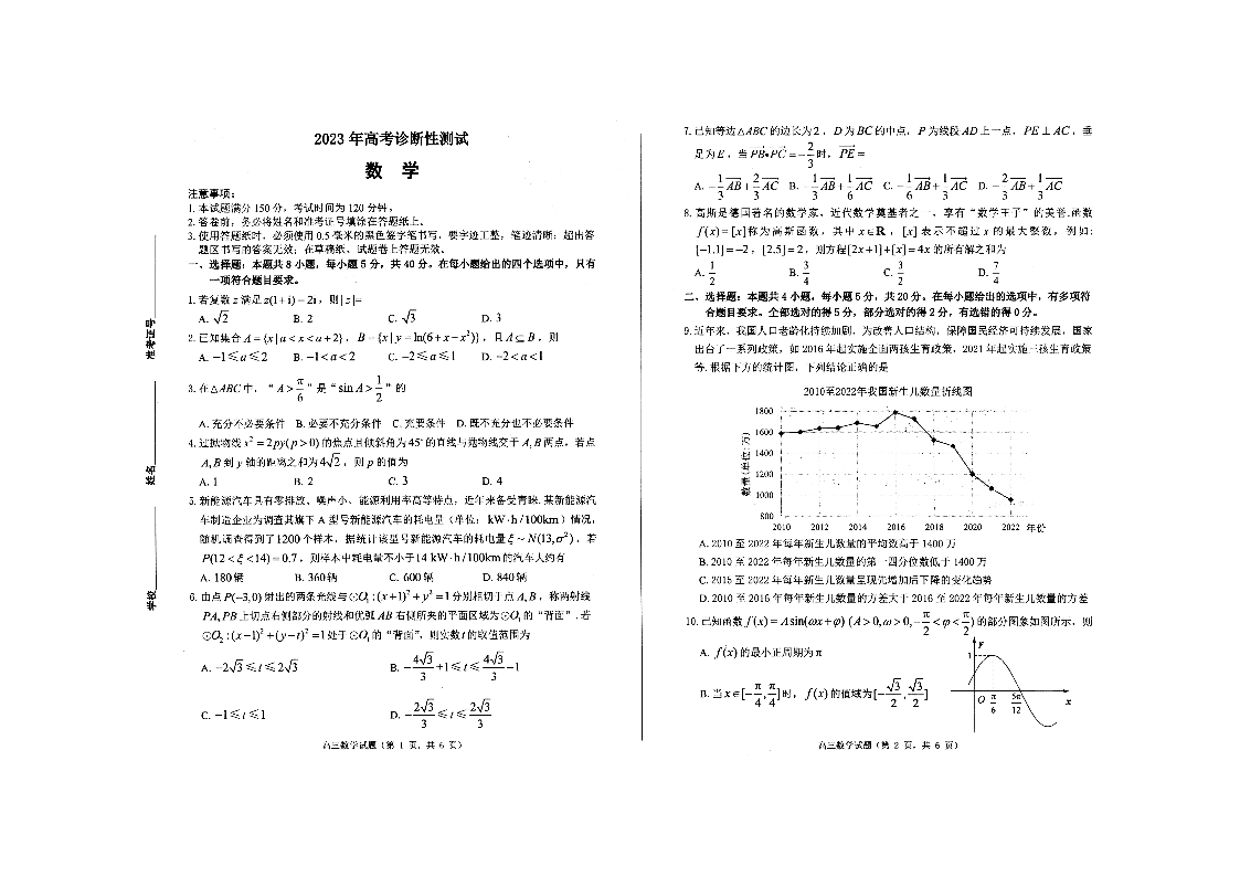 山东省烟台市2023.3高三年级第一次模拟考试数学
