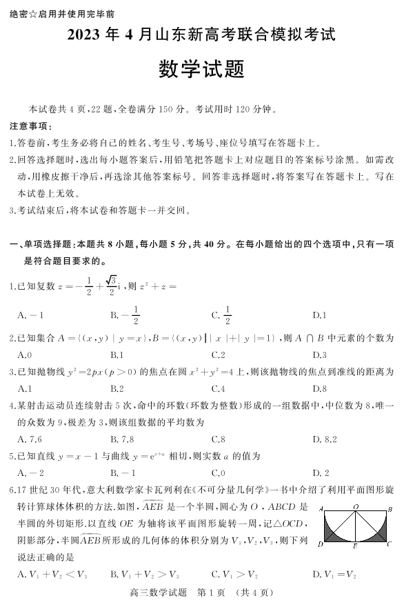 山东省济南市2023.4高三年级第二次模拟考试数学
