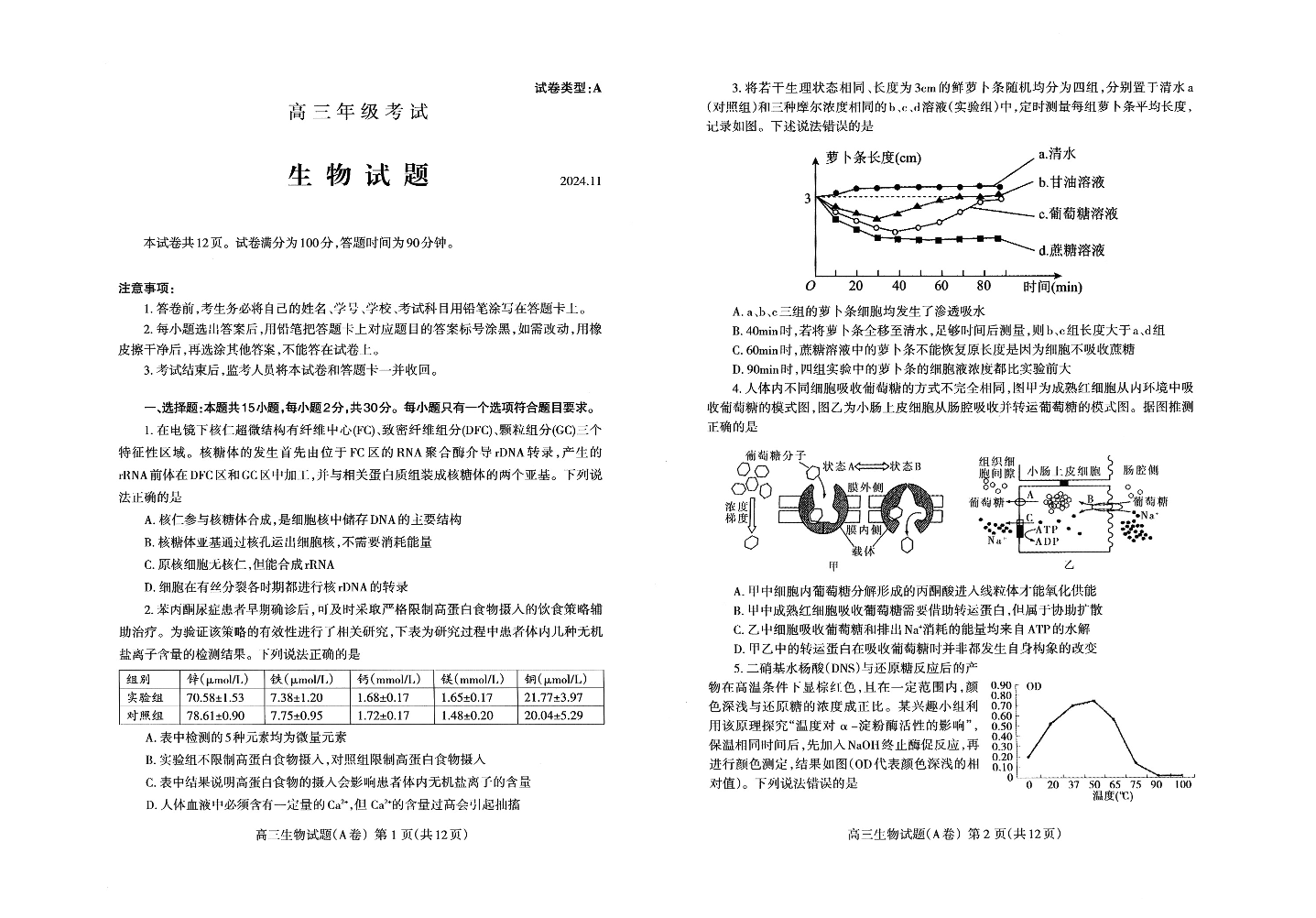 山东省泰安市2024.11高三年级期中考试生物