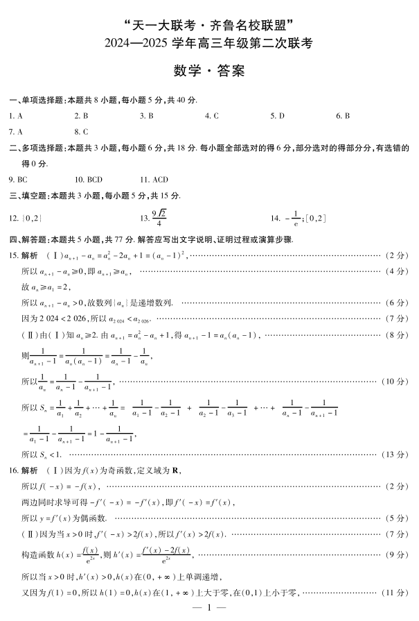 山东省齐鲁名校2024-2025学年高三年级第二次联考+数学答案