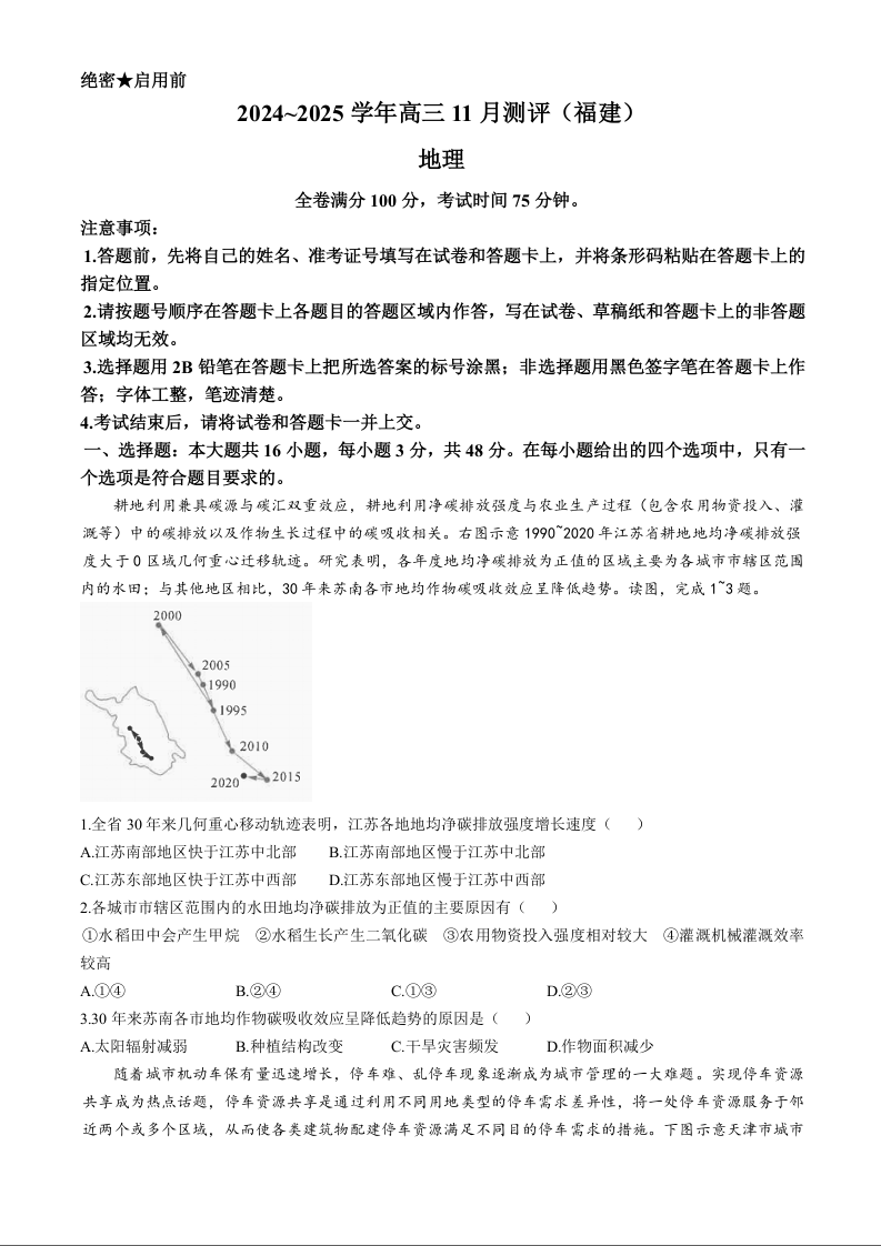 福建省2024-2025学年金科大联考高三11月测评地理及答案