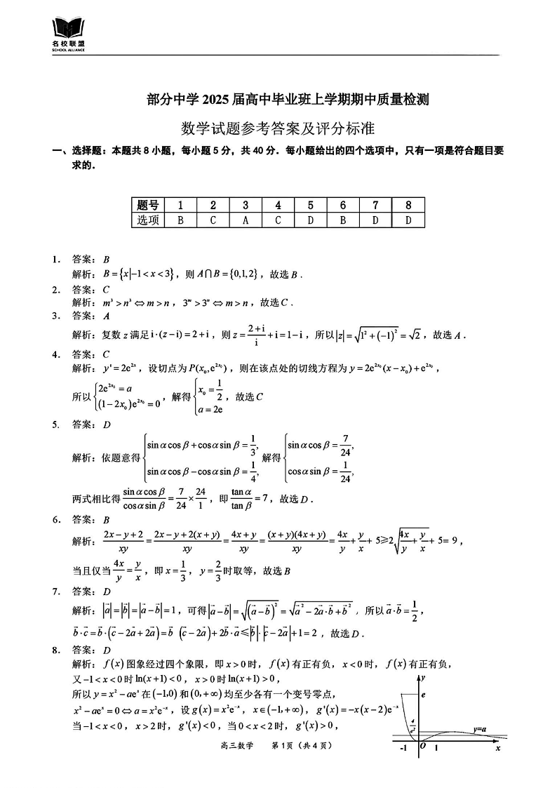 福建省名校联盟2025届高中毕业班上学期期中质量检测数学答案