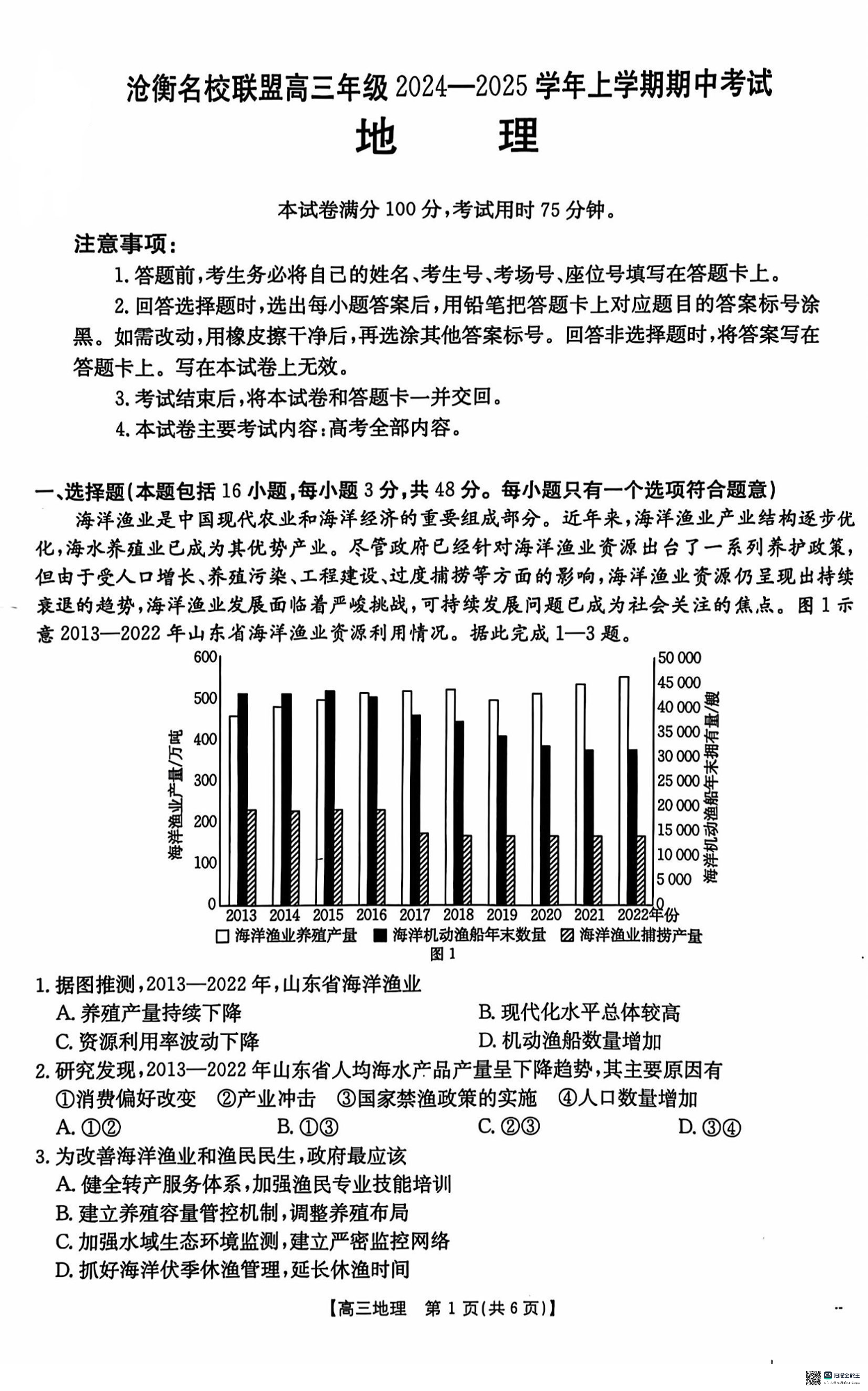河北省沧衡名校联盟2024-2025学年高三11月期中考试地理