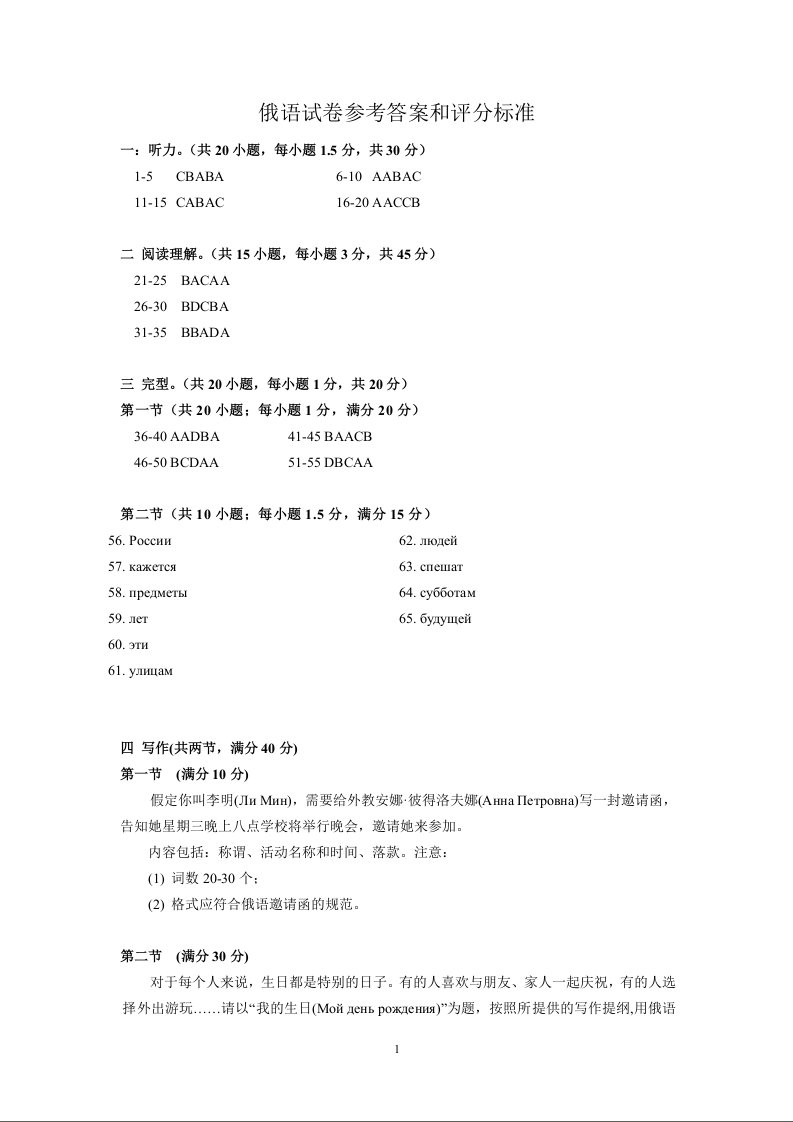 湖北省宜昌协作体2025届高三11月联考俄语答案