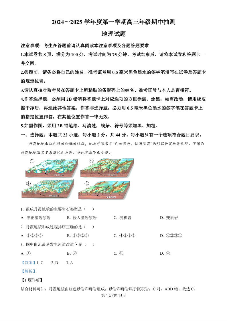 江苏省徐州市2025届高三上学期11月期中考试地理(精品解析版)