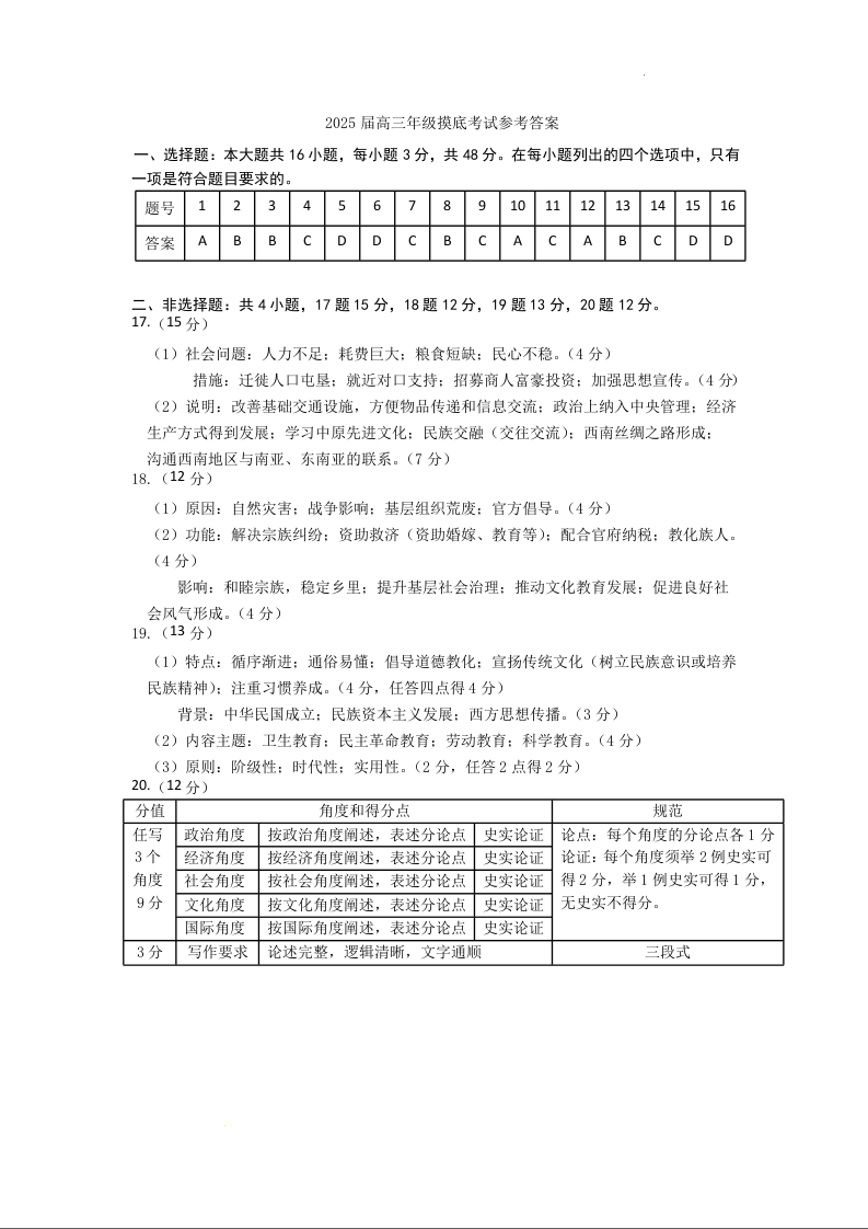 江苏省徐州市2025届高三上学期11月期中考试历史答案