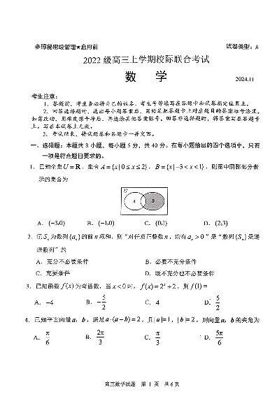 山东省日照市校际联合考试2025届高三上学期11月期中考试数学