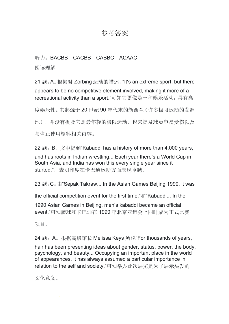 河北省沧州市三校联考2025届高三上学期11月期中考试英语答案