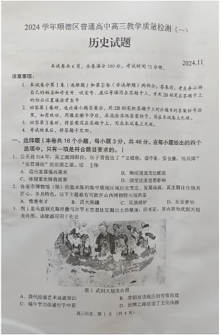 广东省佛山市2024学年顺德区普通高中高三教学质量检测(一) 历史