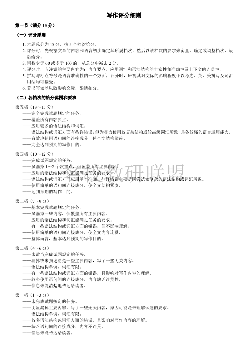 河南省开封五校2024-2025学年高二11月期中联考 英语写作评分