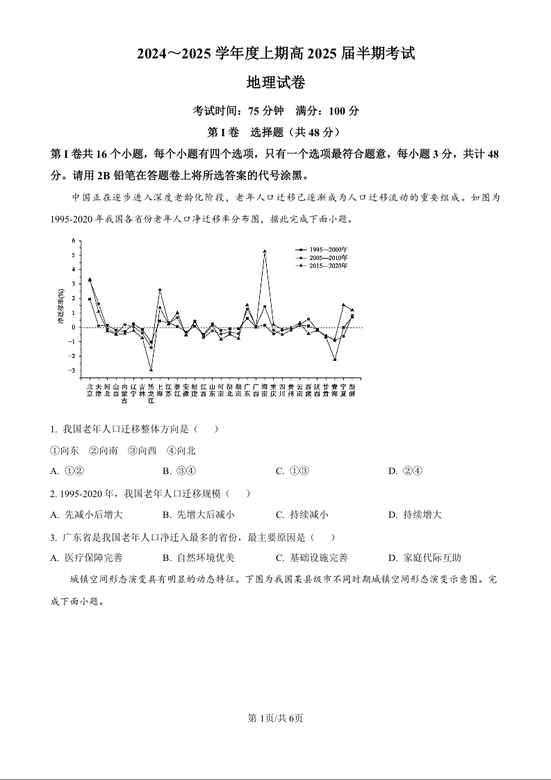 四川省成都市第七中学2024~2025学年度上期高2025届半期考试地理试题(原卷版)
