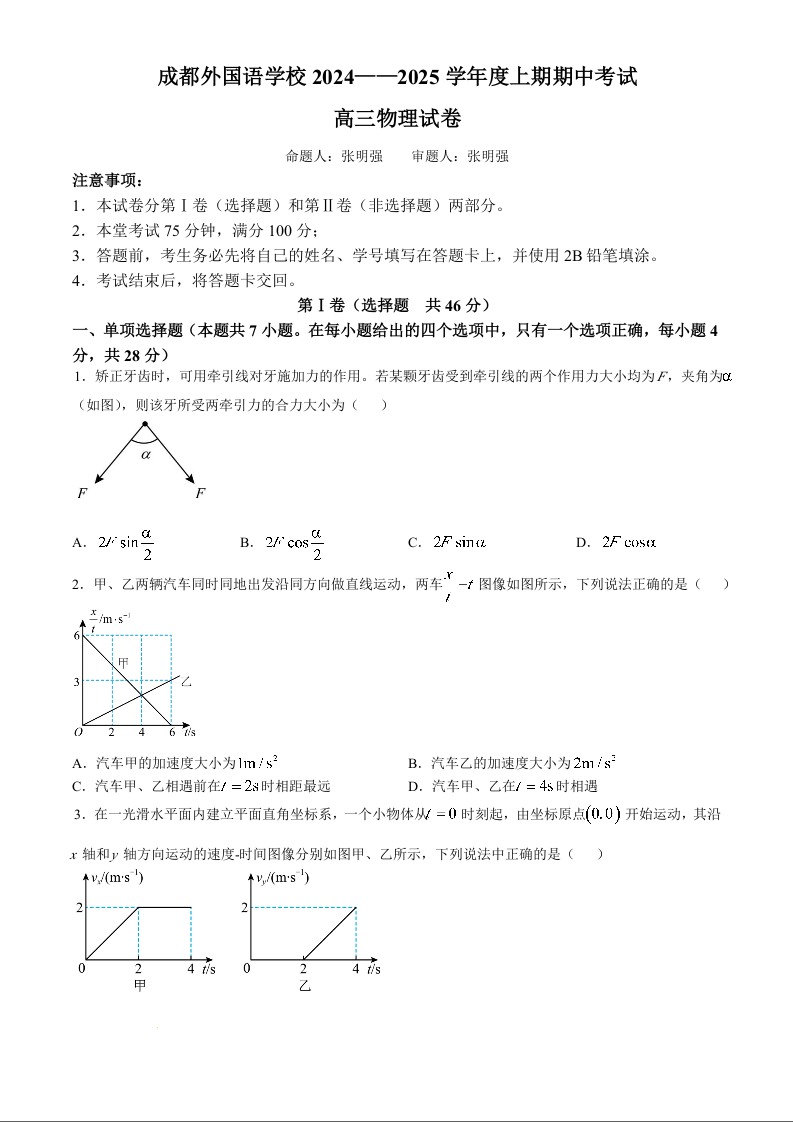 四川省成都外国语学校2025届高三上学期11月期中考试物理及答案