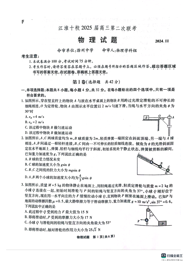 安徽省江淮十校2025届高三上学期第二次联考物理