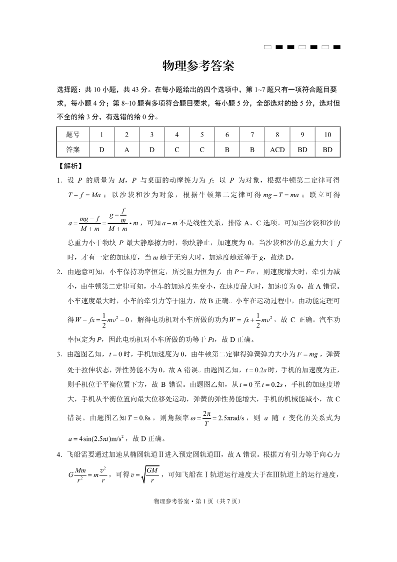 重庆巴蜀中学月考2025届高三适应性月考卷(三)物理答案