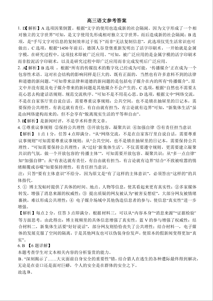 重庆市西南大学附属中学2025届高三上学期11月阶段性检测语文答案