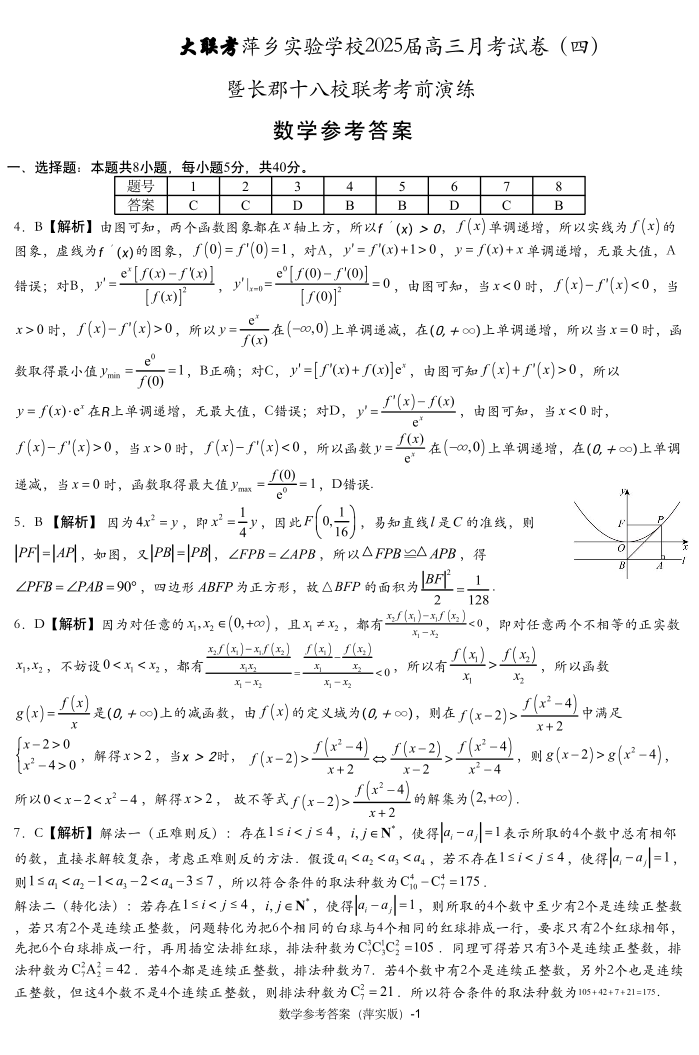 江西省萍乡实验学校2025届高三月考试卷(四)暨长郡十八校联考考前演练数学答案