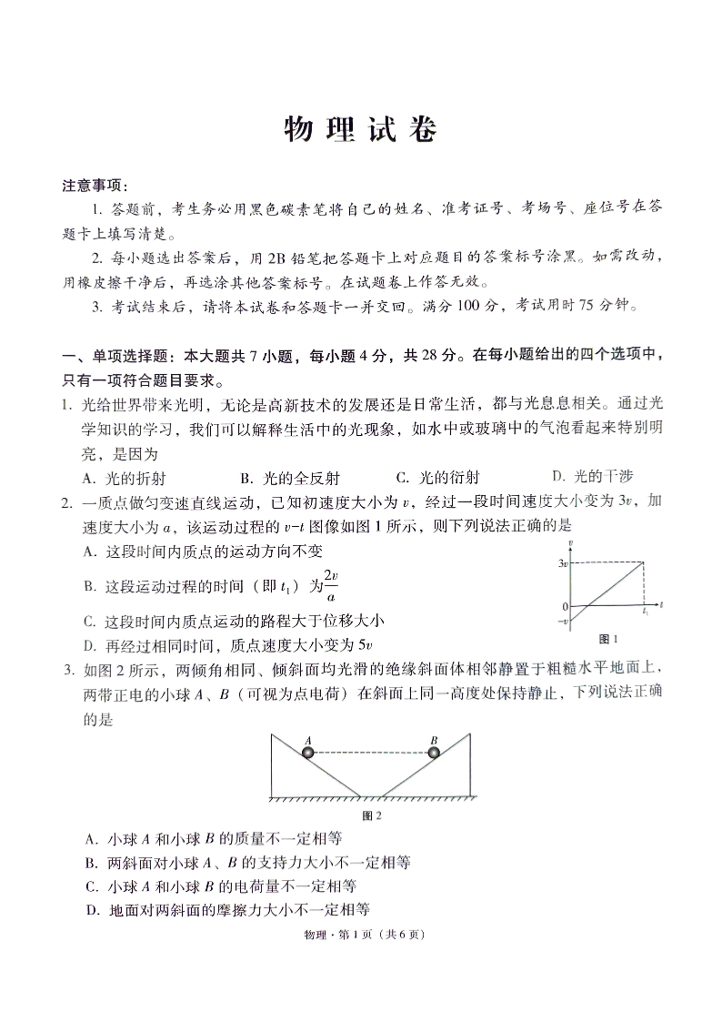 贵州省贵阳市第一中学2025届高三上学期高考适应性月考卷(三)物理