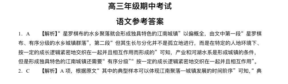 河北省部分学校2025届高三11月期中考试语文答案
