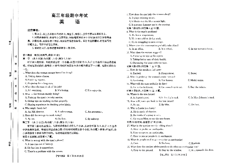 河北省部分学校2025届高三11月期中考试英语