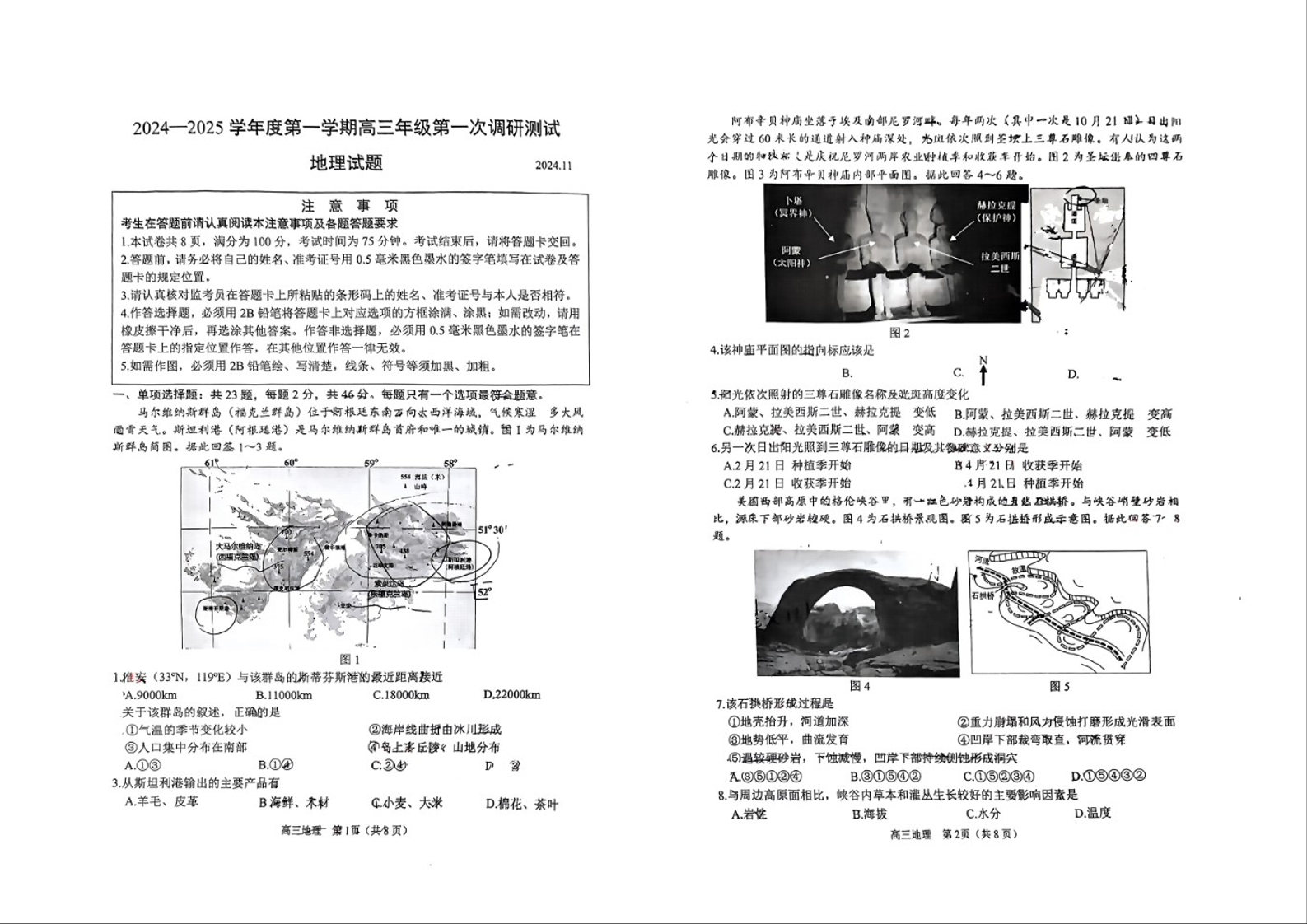江苏省淮安市2025届高三上学期第一次调研测试地理