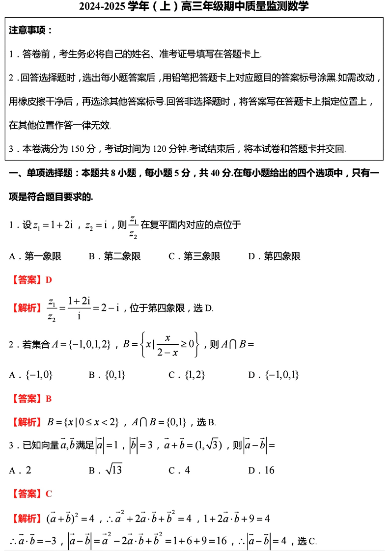 江苏省南通市通州区、如东县2025届高三上学期11月期中联考数学答案