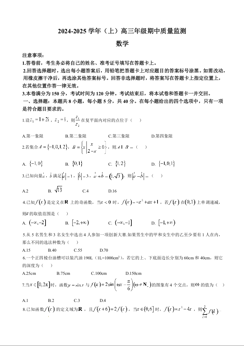 江苏省南通市通州区、如东县2025届高三上学期11月期中联考数学