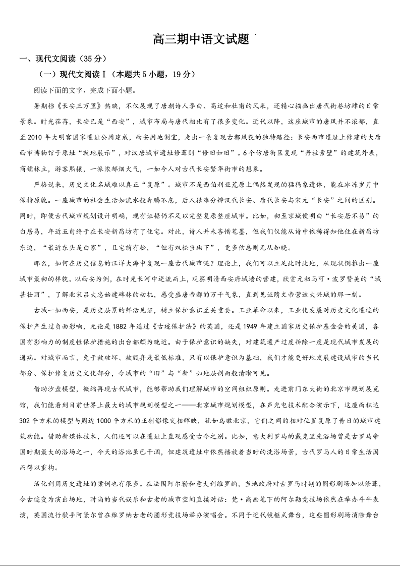 吉林省通化市梅河口市第五中学2025届高三上学期11月期中考试语文+答案