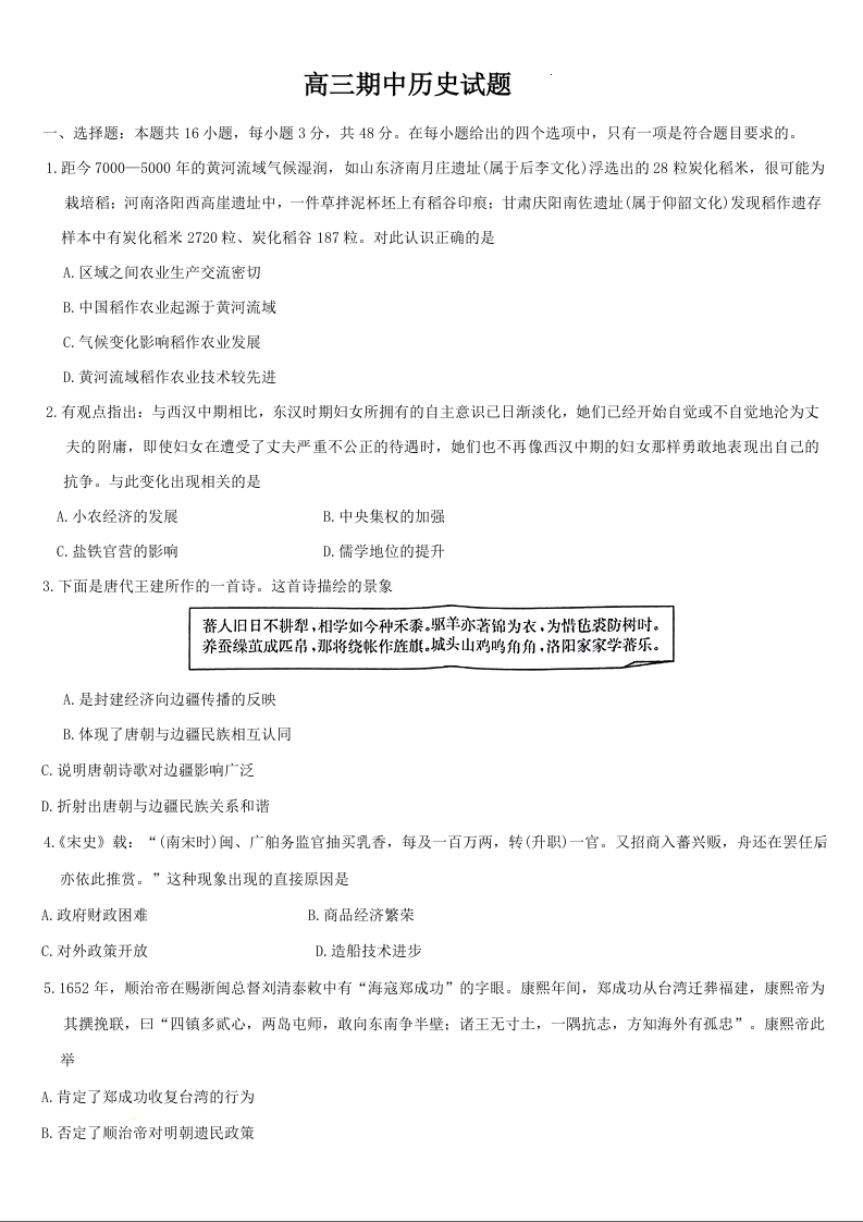 吉林省通化市梅河口市第五中学2025届高三上学期11月期中考试历史+答案