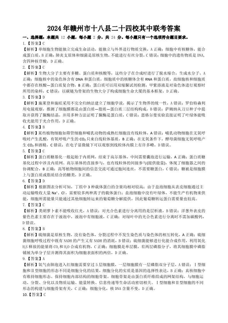 江西省赣州市十八县(市、区)二十四校2025届高三上学期期中考试生物答案
