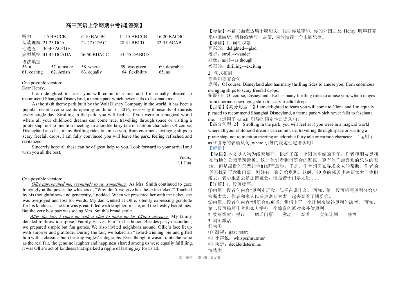 江西省南昌市第三中学2025届高三上学期11月期中考试英语答案